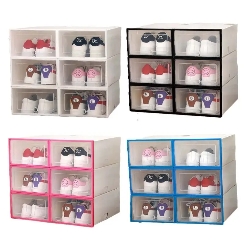 ORIGINAL 6Pcs Plastic Shoe Box Stackable Foldable Shoe Organizer Drawer Storage Case with Flipping Clear Doo